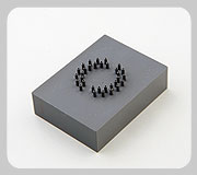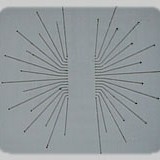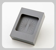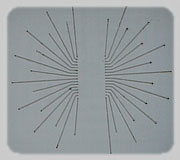 Diese Bilder zeigen ein typisches Beispiel für die Anwendung der Mikromechanik: Eine Messzelle mit Feinststrukturen von Kanälen von 0.15 mm Breite und 0.1 mm Tiefe.